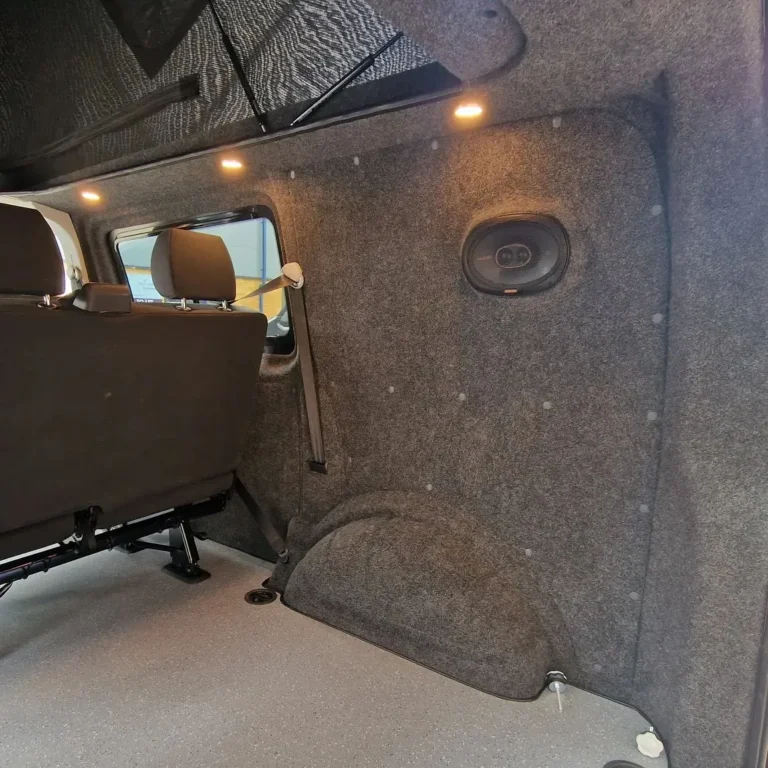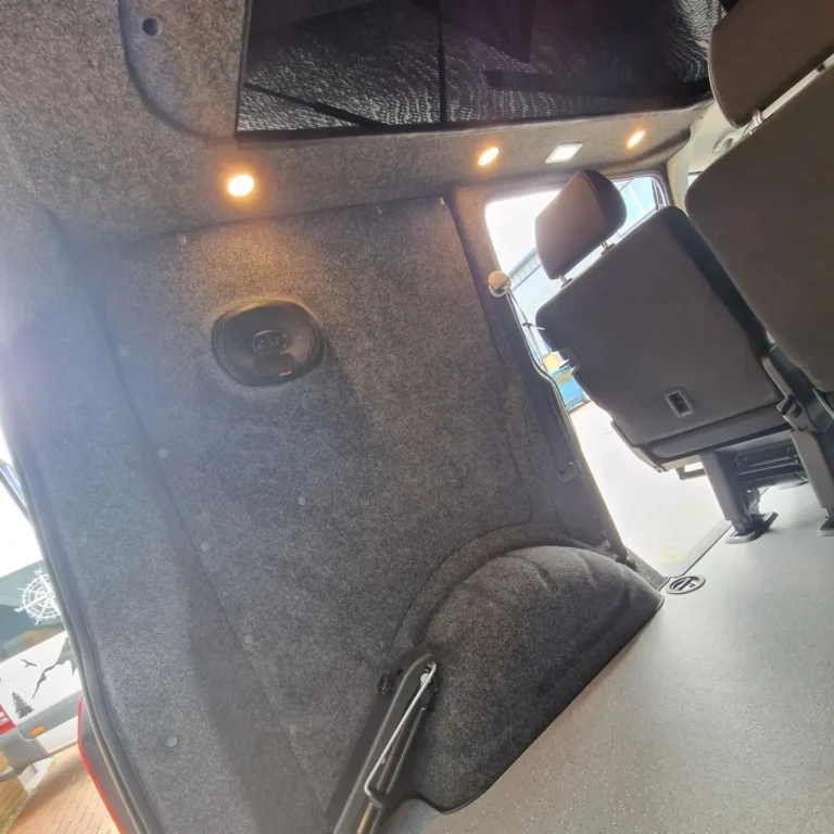 Full carpet lining in the rear of the van, including inside the poptop area for that premium finish