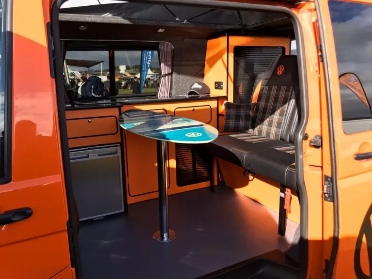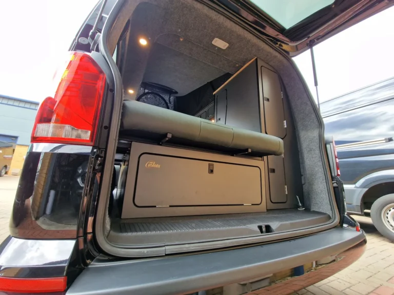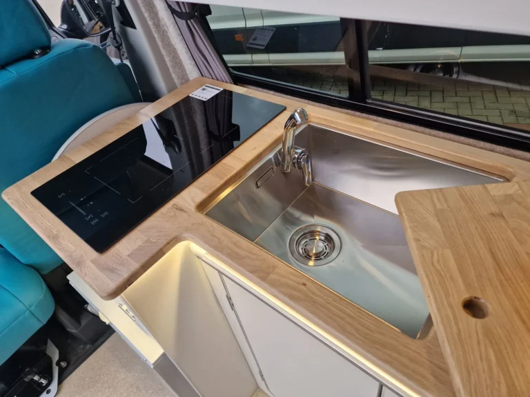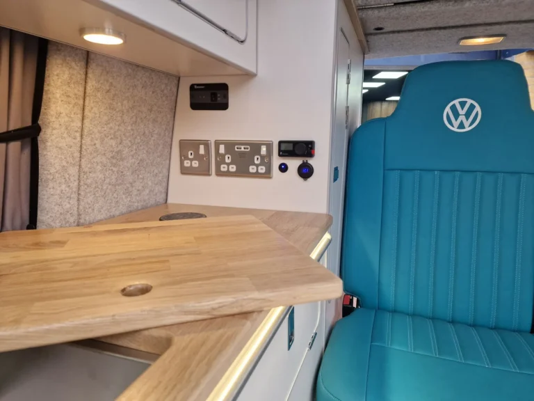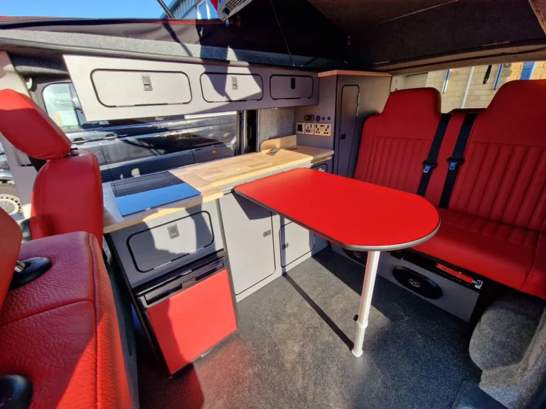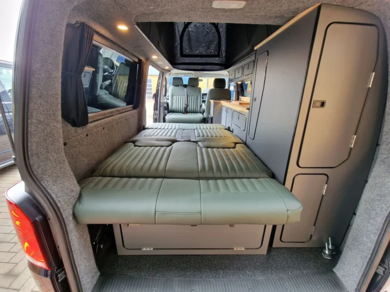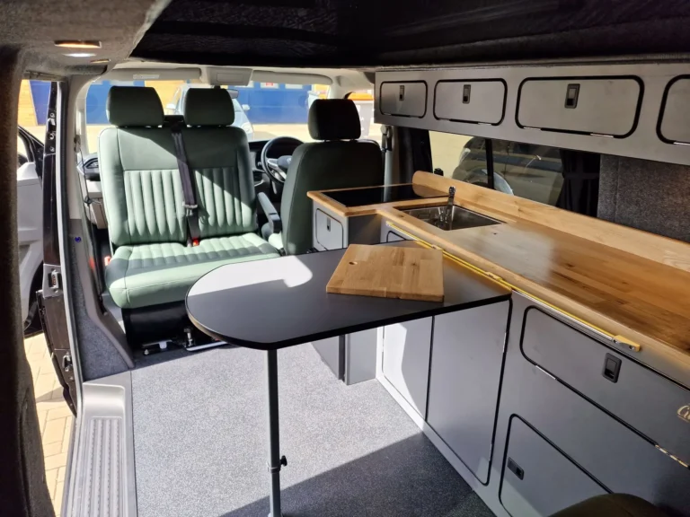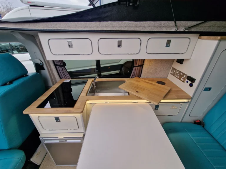 Our most popular campervan design embodies the timeless allure of the traditional layout, showcasing the epitome of practicality and comfort on the road. It begins with a thoughtful integration of a cozy and versatile seating area that effortlessly transforms into a snug sleeping space, ensuring a seamless day-to-night transition. Adjacent to this, a compact yet efficient kitchenette offers all the essentials such as hob, sink, and storage, for culinary adventures on the go. The judicious use of space is evident throughout, with intelligently designed cabinets and storage compartments ingeniously fitted to accommodate travel necessities. This classic layout beautifully balances functionality with an unassuming elegance, providing a comfortable haven while embracing the spirit of wanderlust.